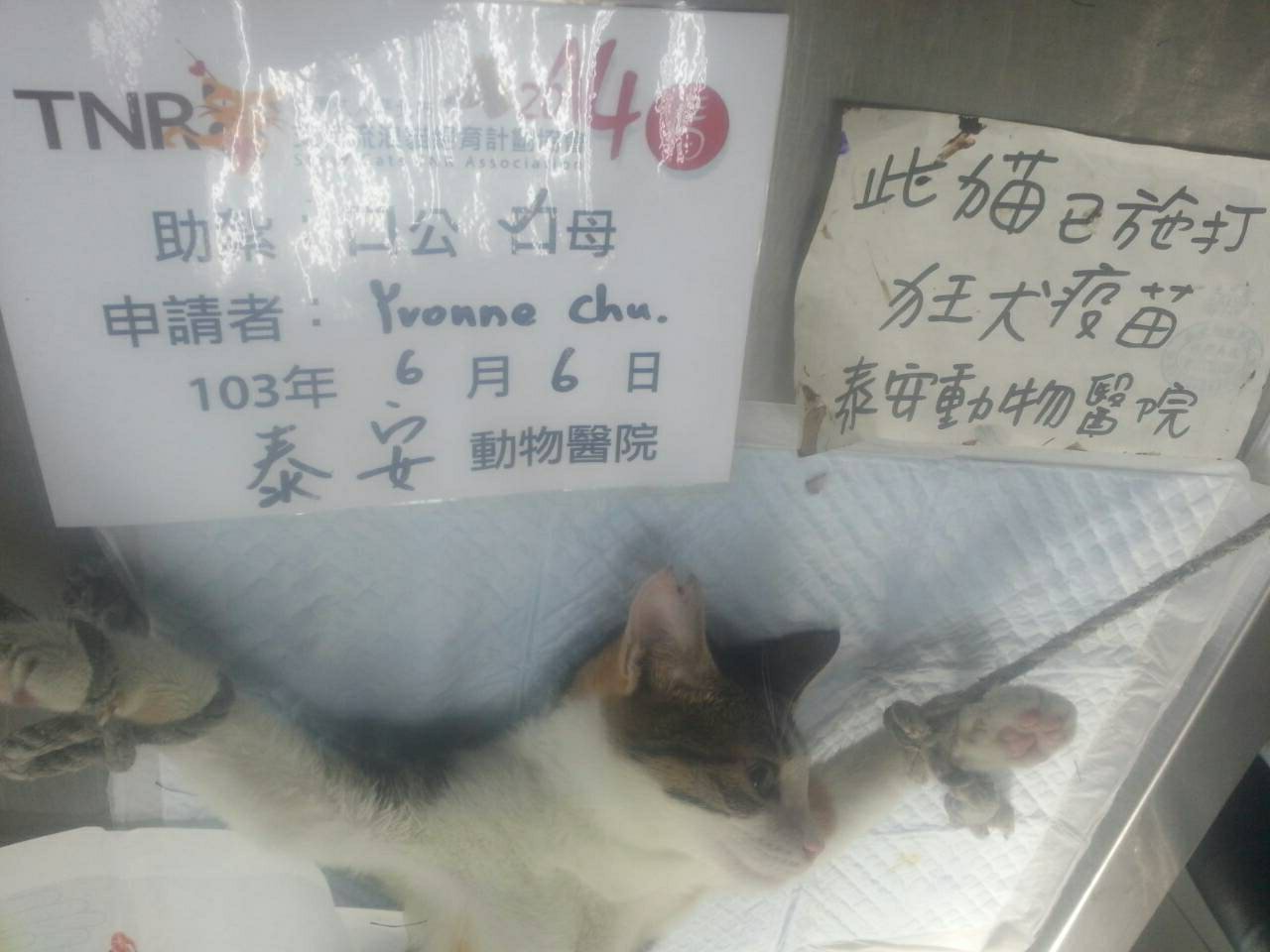 結紮醫院: 泰安動物醫院 結紮費用: 1200
