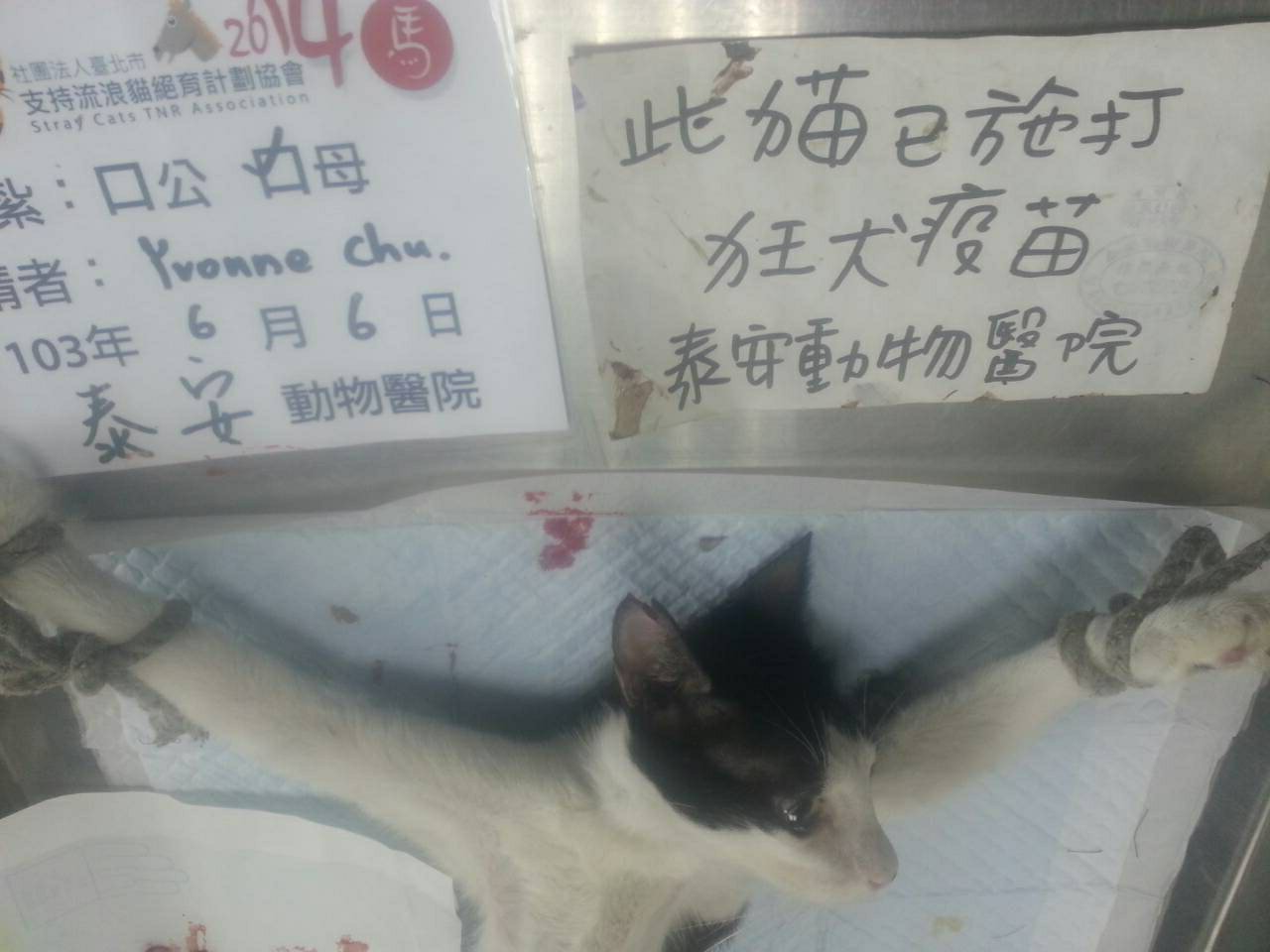 結紮醫院: 泰安動物醫院 結紮費用: 1200