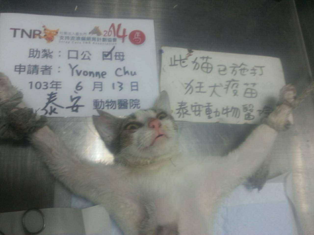 結紮醫院: 泰安動物醫院 結紮費用: 1200
