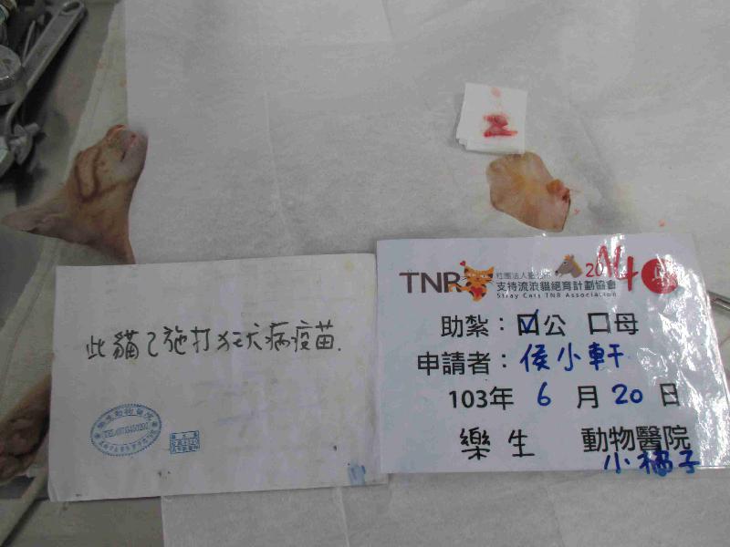 結紮醫院: 樂生動物醫院 結紮費用: 700
