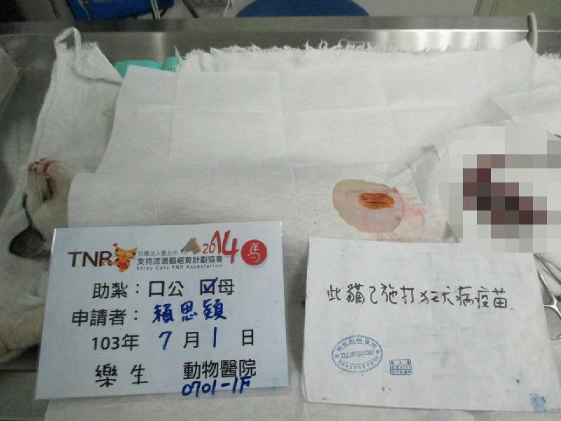 結紮醫院: 樂生動物醫院 結紮費用: 1200