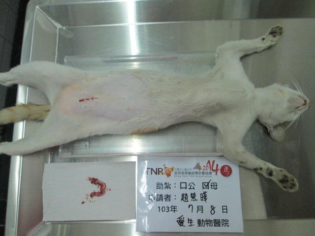 結紮醫院: 愛生動物醫院 結紮費用: 1500