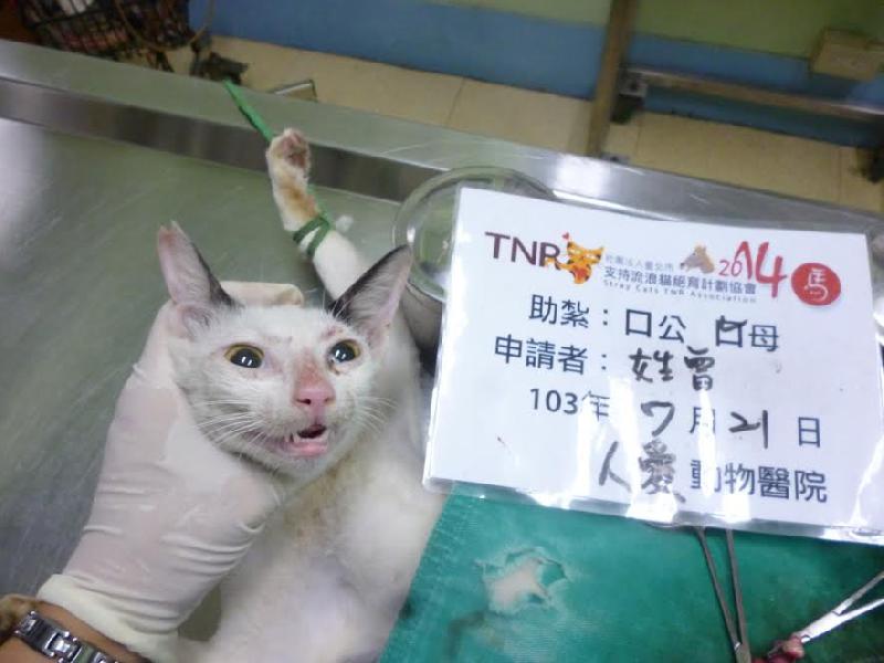 誘捕者暱稱: 阿真 性別: 母 花色: 白底兩耳黑 誘捕地點: 忠孝公園 結紮醫院: 人愛動物醫院 結紮費用: 1200 助紮者: 已付款:Katex4 額外醫療費用申請: 特別說明與誘捕心情: 某天回家的路上經過了忠孝公園意外發現公園的人行道上有幾隻貓咪慵懶的躺在那兒休息