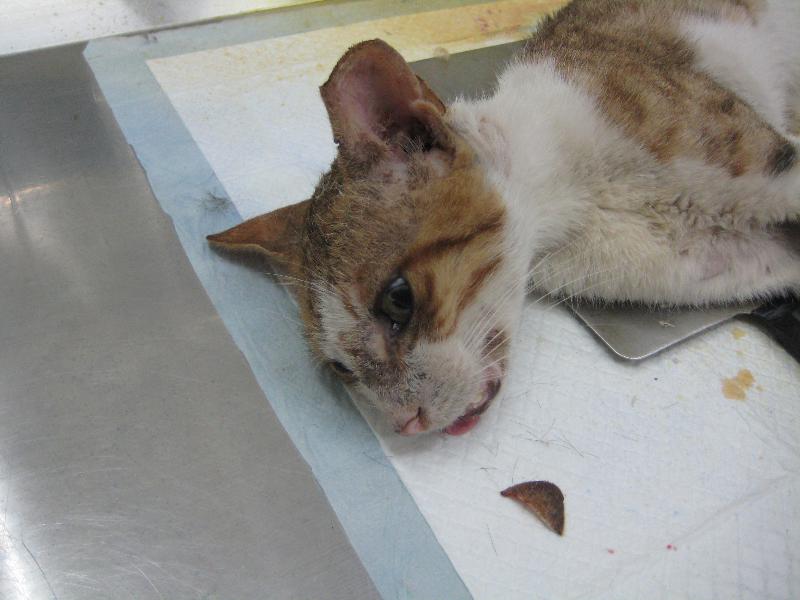 看到滿臉是傷的公貓看了很不忍心,未結紮的貓就是會一直打架,所以放假後趕緊去誘捕,順便請醫生檢查傷口