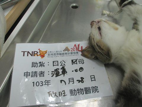 誘捕者暱稱: 楊溫蒂 性別: 母 花色: 白底虎斑 誘捕地點: 基隆西定國小旁 結紮醫院: 欣旺動物醫院 結紮費用: 1500 助紮者: 已付款:思~x1, yryx4 額外醫療費用申請: 特別說明與誘捕心情: 2014~ 基隆老家西定國小旁巷內真的很多浪貓.雖然我搬離有十年之久但在每每回去探親就覺得難過 母貓尤其多 去年TNR了幾隻母貓 今年趕緊腳步繼續處理漏網母貓及其之前生下來而有幸存活的第二代浪貓 讓鄰居們不困擾 雖然浪貓吃廚餘雜物 起碼數量在控制中~~