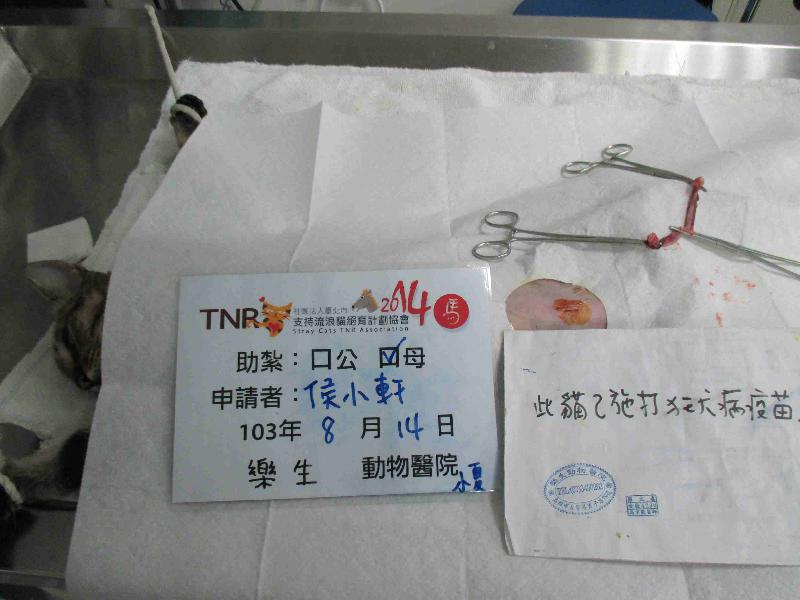 結紮醫院: 樂生動物醫院 結紮費用: 1200
