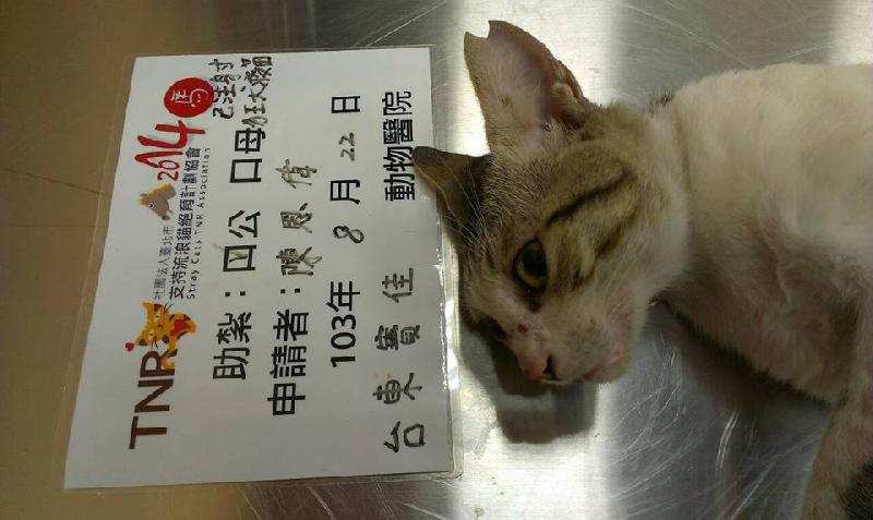 花色: 灰白虎斑 誘捕地點: 台東市復興路