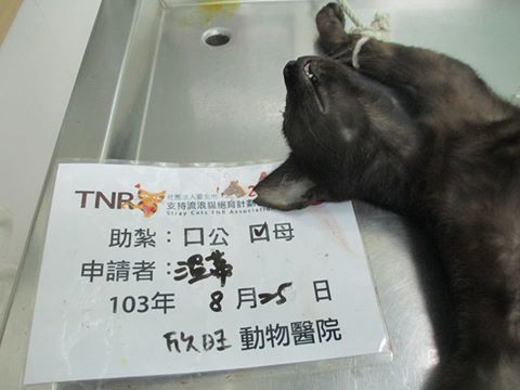 誘捕者暱稱: 楊溫蒂 性別: 母 花色: 黑貓 誘捕地點: 基隆西定路 結紮醫院: 欣旺動物醫院 結紮費用: 1500 助紮者: 已付款:陳璐比x1, 梨x1, angelcatx1, Bonnie Leex2 額外醫療費用申請: 特別說明與誘捕心情: 2014~ 基隆老家西定國小旁巷內真的很多浪貓.雖然我搬離有十年之久但在每每回去探親就覺得難過 母貓尤其多 去年TNR了幾隻母貓 今年趕緊腳步繼續處理漏網母貓及其之前生下來而有幸存活的第二代浪貓 讓鄰居們不困擾 雖然浪貓吃廚餘雜物 起碼數量在控制中~~