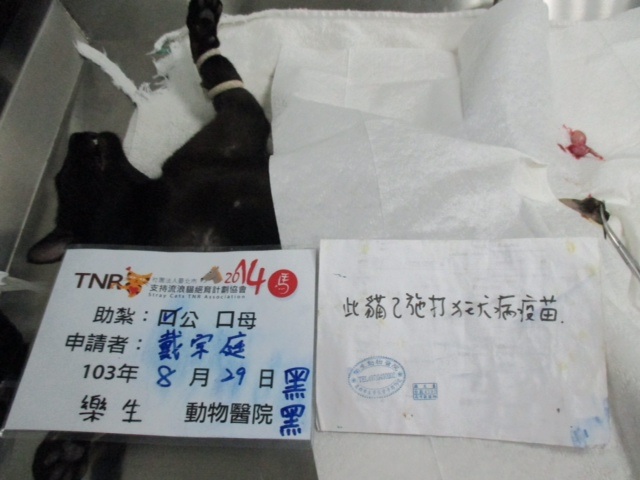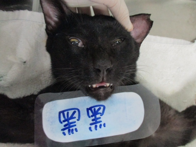黑黑是我在左營區工作地區餵養的貓咪,是近期來的新朋友,一來就開始搶地盤很兇,所以快帶他結紮,後右腳有打架的外傷,已有治療,謝謝協會和大眾的幫忙費用