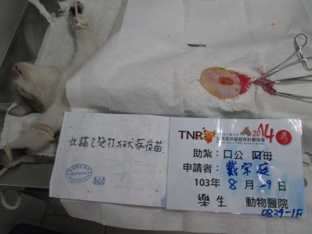 結紮醫院: 樂生動物醫院 結紮費用: 1200