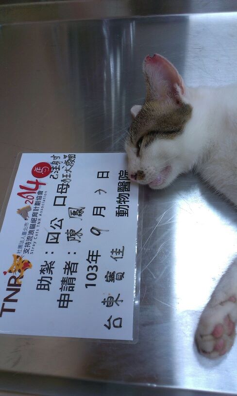 花色: 白底虎斑 誘捕地點: 台東市信義路