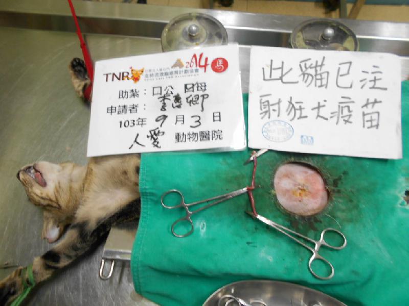 結紮醫院: 人愛動物醫院 結紮費用: 1200
