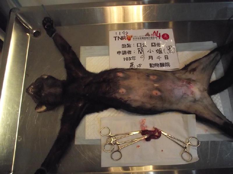 數月前這隻黑貓在哺乳中..也就沒抓.. 數月後的現在也就可以結紮了..可憐牠生的小孩據了解全都死掉了....