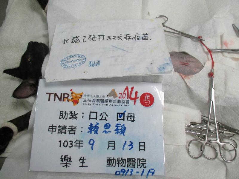 結紮醫院: 樂生動物醫院 結紮費用: 1200