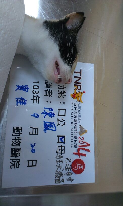 在前一次誘捕時,本來此隻母三花快要進誘捕籠了,可是她跟別隻在吵架,一陣吼叫就沒進了,隔幾天再次誘捕時,怕她不願再進籠,在家水煮魚肉,結果有猶豫一下,最後還是進籠了,真是謝天謝地啊!有貓友建議我下次可煎秋刀魚,我會試試看,此貓醫院有幫牠打狂犬病疫苗,謝謝協會的幫忙,及各位善心人士的捐助,感恩~