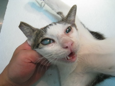 這又是一隻母帶子的貓,小貓已經兩個月大了,這次母子一起捕獲,但是小貓太小了,先把媽媽紮了。母貓右眼似乎有問題,也請醫生一併治療。謝謝大家幫忙。