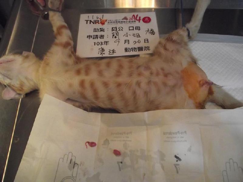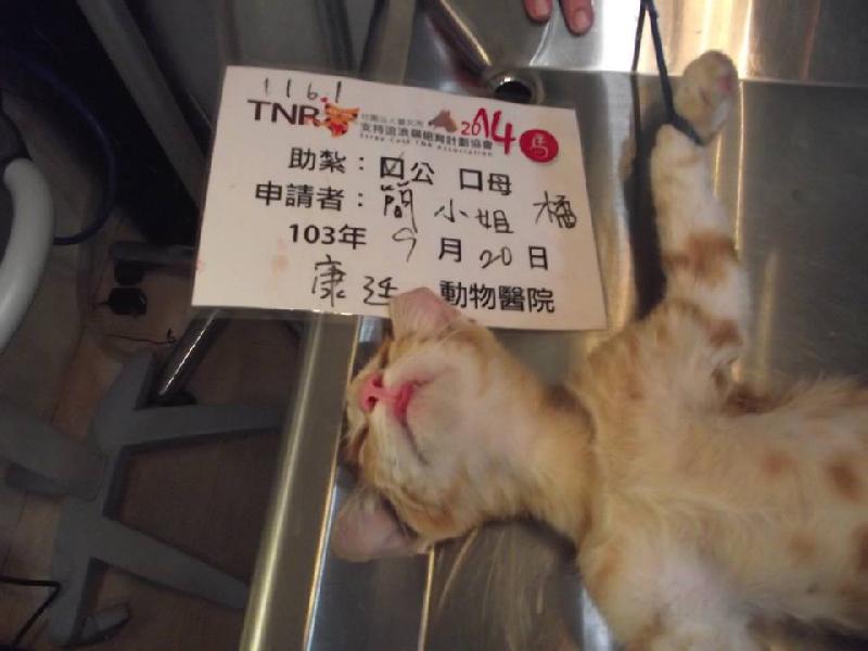 誘捕者暱稱: 嘉嘉 性別: 公 花色: 橘 誘捕地點: 萬華區和德里 結紮醫院: 康廷動物醫院 結紮費用: 800 助紮者: 已付款:黃小福x1, Shih Chi Yux1, bibimax1 額外醫療費用申請: 特別說明與誘捕心情: 這個孩子來自於萬華某里