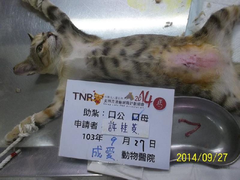 結紮醫院: 成愛動物醫院 結紮費用: 1500