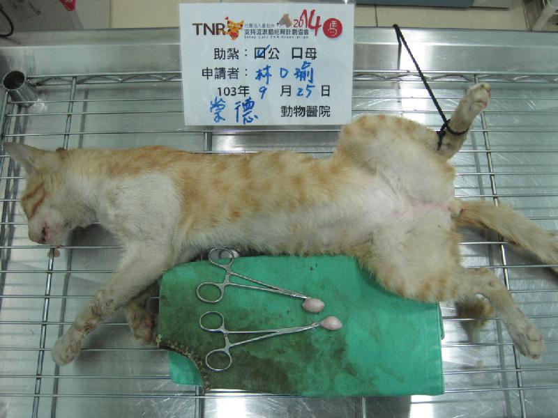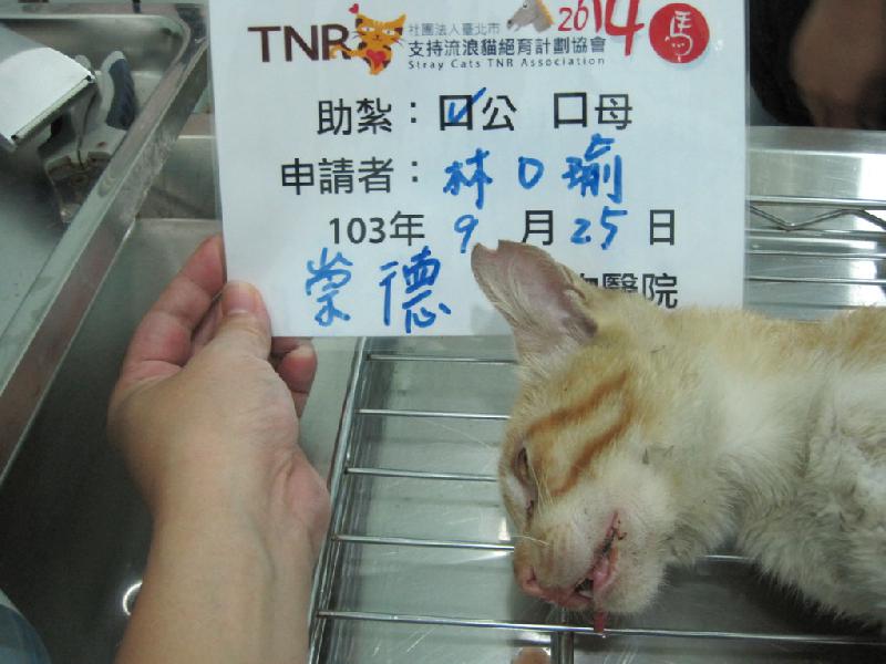 這隻貓前陣子發情了一直喵喵叫,餵養人很怕會引來鄰居不滿而發生不好的事。所以請我抓去結紮,希望之後他也能無痛無病幸福的過下去。