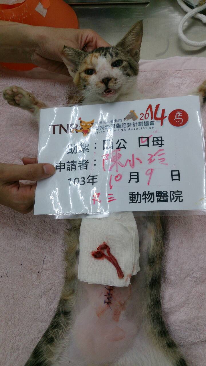 結紮醫院: 你我牠動物醫院 結紮費用: 1500