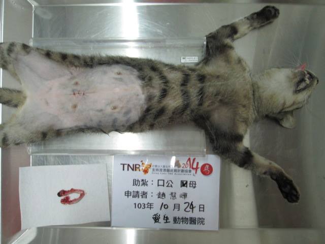 結紮醫院: 愛生動物醫院 結紮費用: 1500