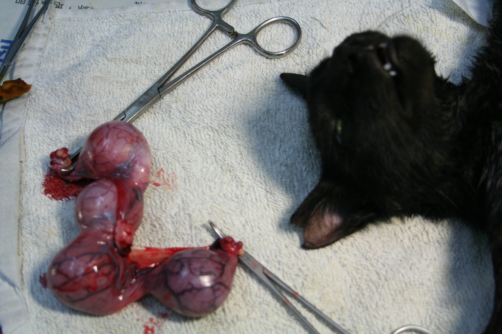 1-2個多月前看到她有點垂奶..可是看她體型又很小...持續餵養到現在發現奶沒漲了..趕快抓她結紮..不過已有小胚胎了.