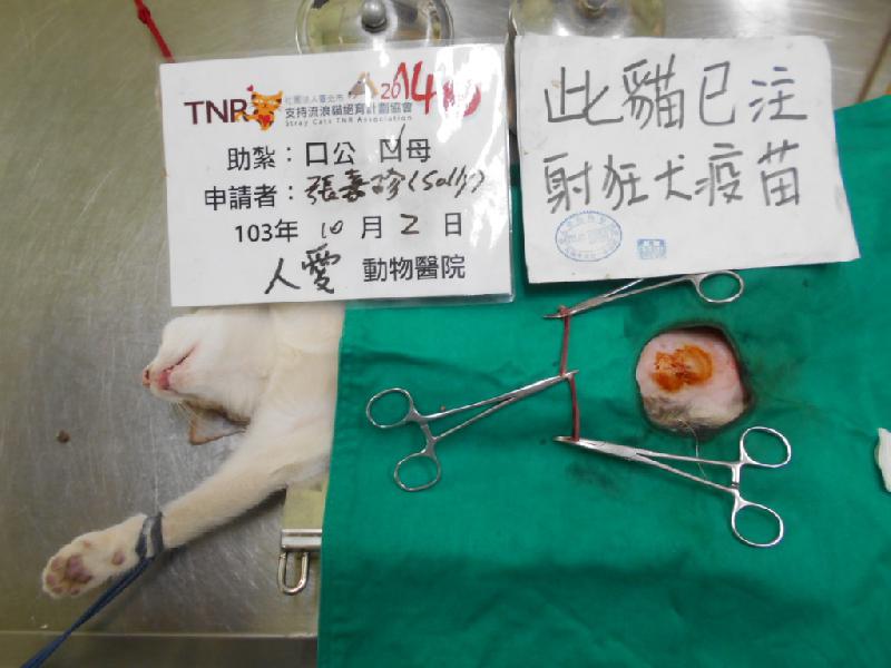 結紮醫院: 人愛動物醫院 結紮費用: 1200
