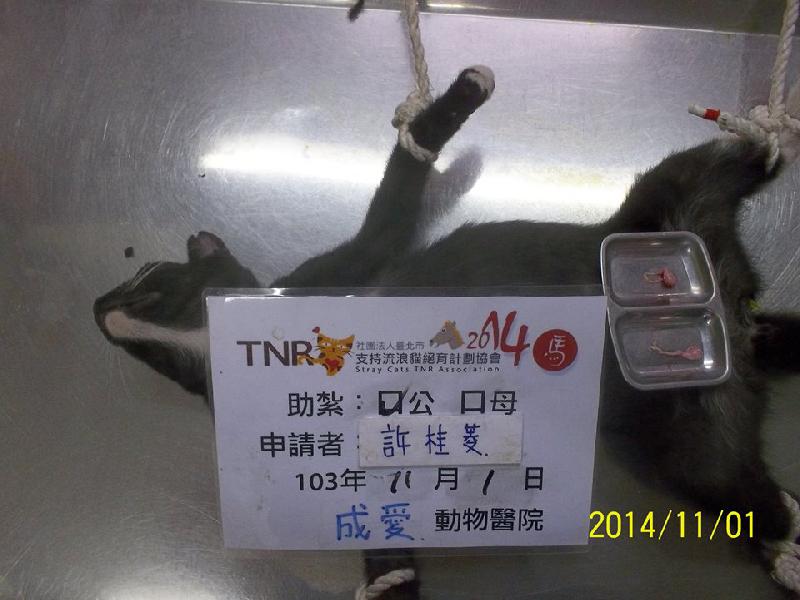 結紮醫院: 成愛動物醫院 結紮費用: 1000