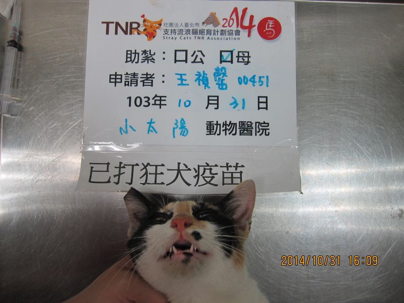 結紮醫院: 小太陽動物醫院 結紮費用: 1500