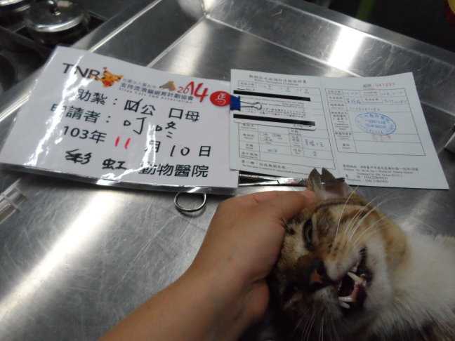 今天他結紮完去看看他,摸摸他,告訴他我會再帶他回他熟悉的地方,還有記得一定要回來吃飯飯喔!!! 絕對不會讓你餓著了!!