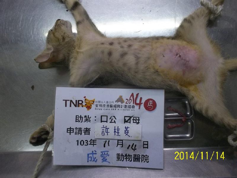 結紮醫院: 成愛動物醫院 結紮費用: 1500