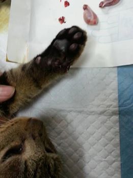 聽醫師說要手術及住院感到有點不捨,不過想到為貓咪好,也就較能釋懷,雖辛苦也值得。因為貓咪的狼爪受傷,經清理碎爪片及縫合,需申請額外費用。