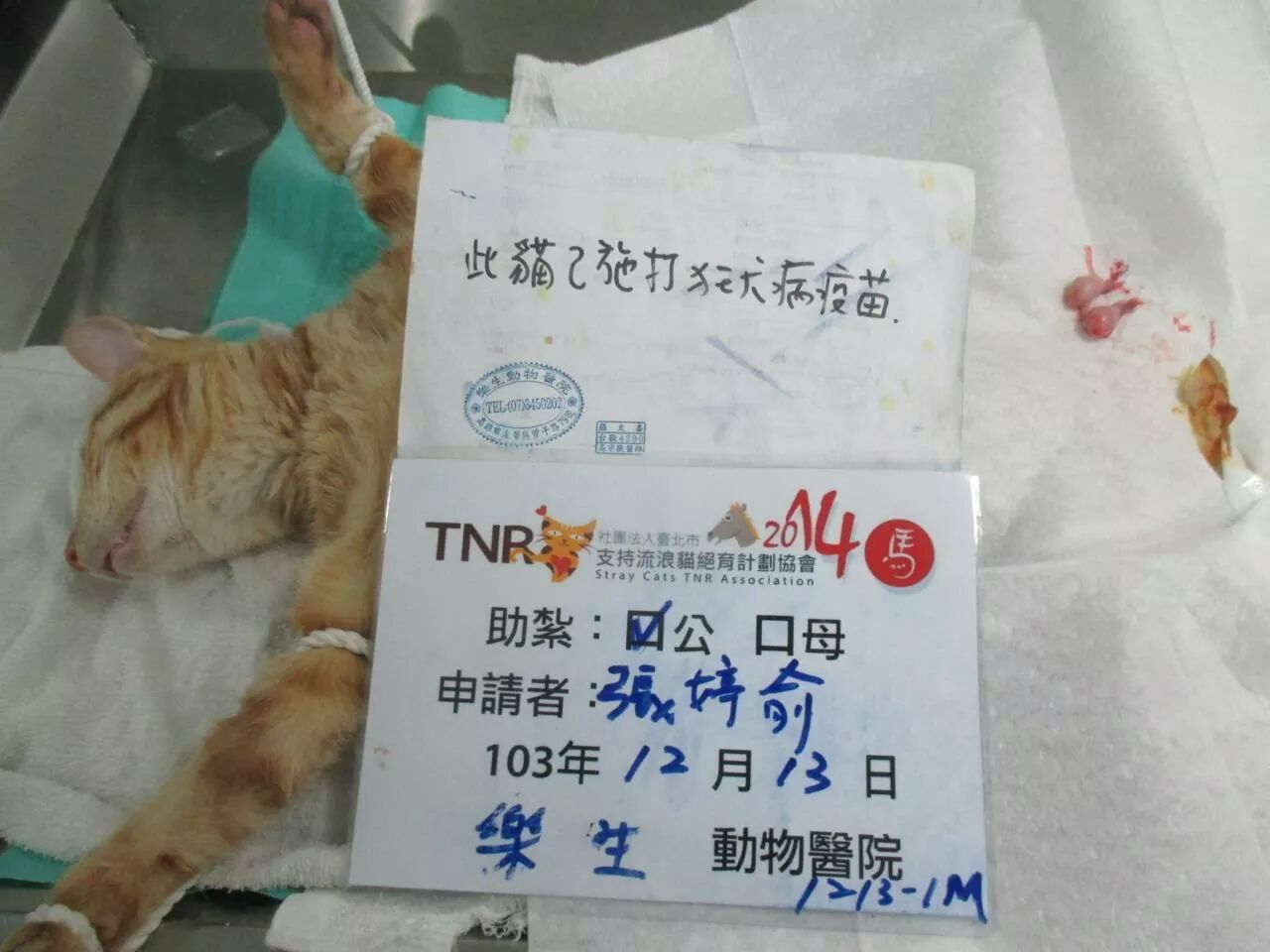 終於在寒冷冬天前,節紮嘍∼麻煩大家幫忙協會節紮跟醫助費用,謝謝大家!