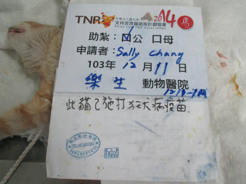 結紮醫院: 樂生動物醫院 結紮費用: 700