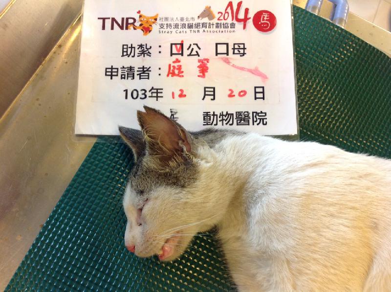 今天是冬天來到前南部地區捕紮最後一天,高雄今天天氣不錯,與愛媽講好先不餵食,能多紮一隻,就能少幾隻浪貓產出。這隻可憐的貓咪,居然一隻眼睛黏在一起無法睜開,問醫生表示應是先天缺陷,稍稍放下心,想必牠已適應現狀,雖然今天送紮的醫院較遠,總算是盡一分心力!也謝謝大家的幫忙與讚助喔!