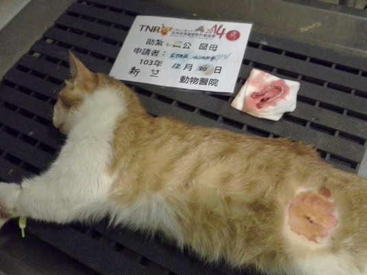 另外還有一隻橘白大公貓麻醉的時後發現已經結紮過,