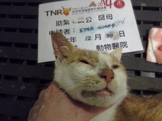 誘捕者暱稱: Star Wang 性別: 母 花色: 橘白 誘捕地點: 南寮收容所 結紮醫院: 新竺動物醫院 結紮費用: 1500 助紮者: 已付款:sophiax3, Iris Hsux2 額外醫療費用申請: 特別說明與誘捕心情: 20141229自南寮收容所領出六隻成貓,