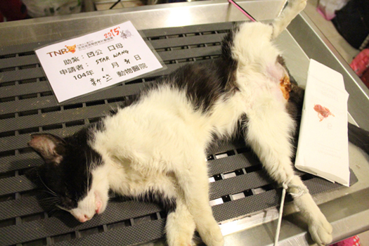 誘捕者暱稱: Star Wang 性別: 公 花色: 黑白 誘捕地點: 竹南留置所 結紮醫院: 新竺動物醫院 結紮費用: 800 助紮者: 已付款:小乖x4, yvonnex1, yvonnex1 額外醫療費用申請: 1000 特別說明與誘捕心情: 20150131南寮收容所共領出五隻成貓,