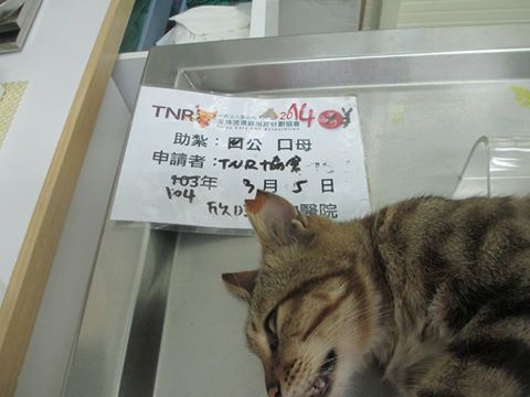 誘捕者暱稱: 臺北市支持流浪貓絕育計劃協會 性別: 公 花色: 虎斑 誘捕地點: 寺廟 結紮醫院: 欣旺動物醫院 結紮費用: 800 助紮者: 已付款:lazymimicatx1, Zoex2 額外醫療費用申請: 特別說明與誘捕心情: 經購地庇護中心鄰居通報,