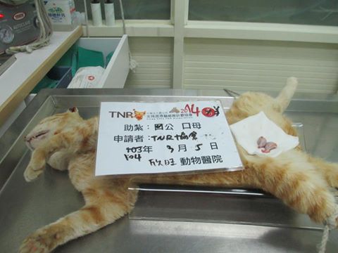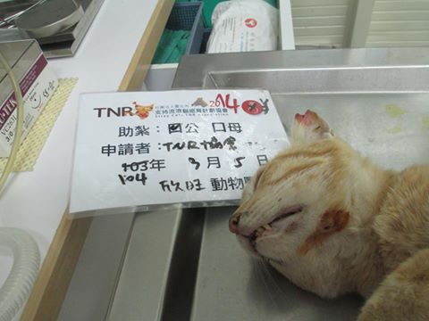 誘捕者暱稱: 臺北市支持流浪貓絕育計劃協會 性別: 公 花色: 黃 誘捕地點: 寺廟 結紮醫院: 欣旺動物醫院 結紮費用: 800 助紮者: 已付款:Peggy Chenx3 額外醫療費用申請: 特別說明與誘捕心情: 經購地庇護中心鄰居通報,