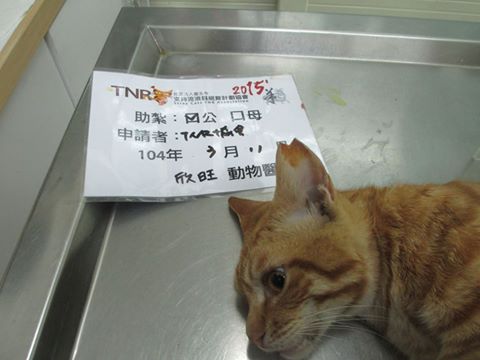誘捕者暱稱: 臺北市支持流浪貓絕育計劃協會 性別: 公 花色: 黃 誘捕地點: 寺廟 結紮醫院: 欣旺動物醫院 結紮費用: 800 助紮者: 已付款:zuwonx1, Esmeraldax1, Yawen Liux1 額外醫療費用申請: 特別說明與誘捕心情: 經購地庇護中心鄰居通報,