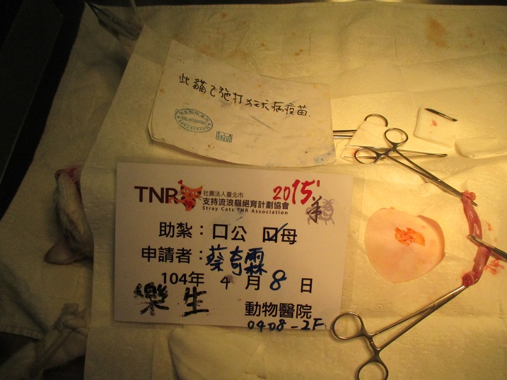 結紮醫院: 樂生動物醫院 結紮費用: 1200