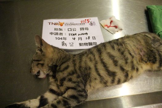 一隻母貓由醫院醫生贊助結紮,