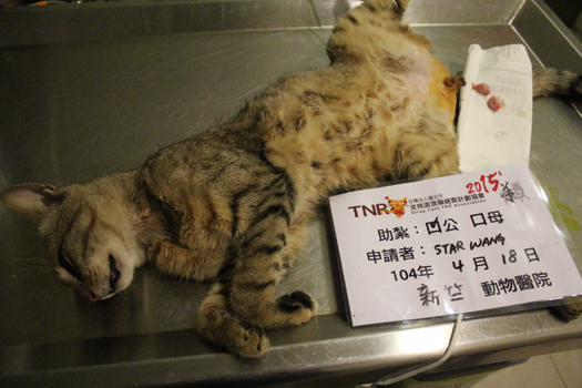 一隻母貓由醫院醫生贊助結紮,