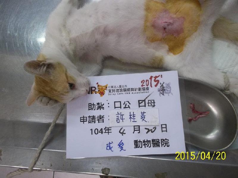 結紮醫院: 成愛動物醫院 結紮費用: 1500