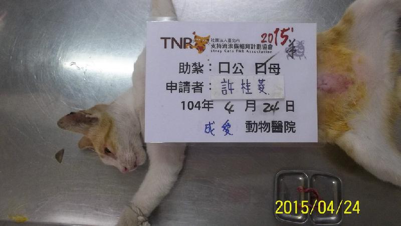 結紮醫院: 成愛動物醫院 結紮費用: 1500