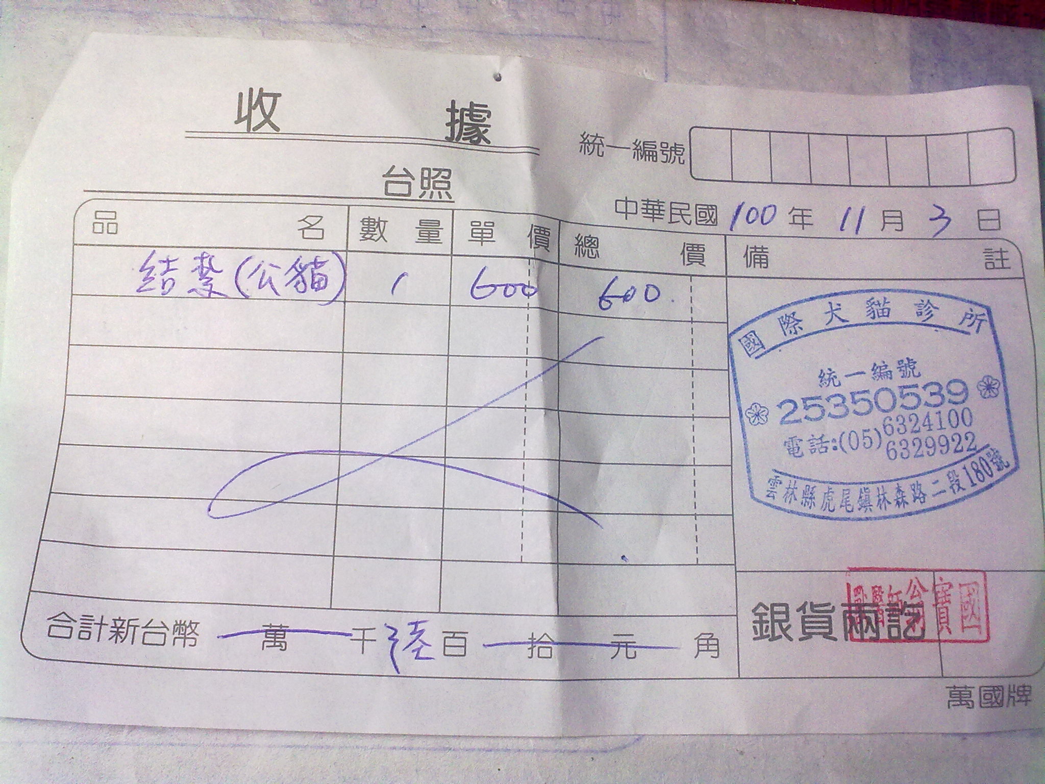 結紮醫院: 國際犬貓專科醫院 結紮費用: 600
