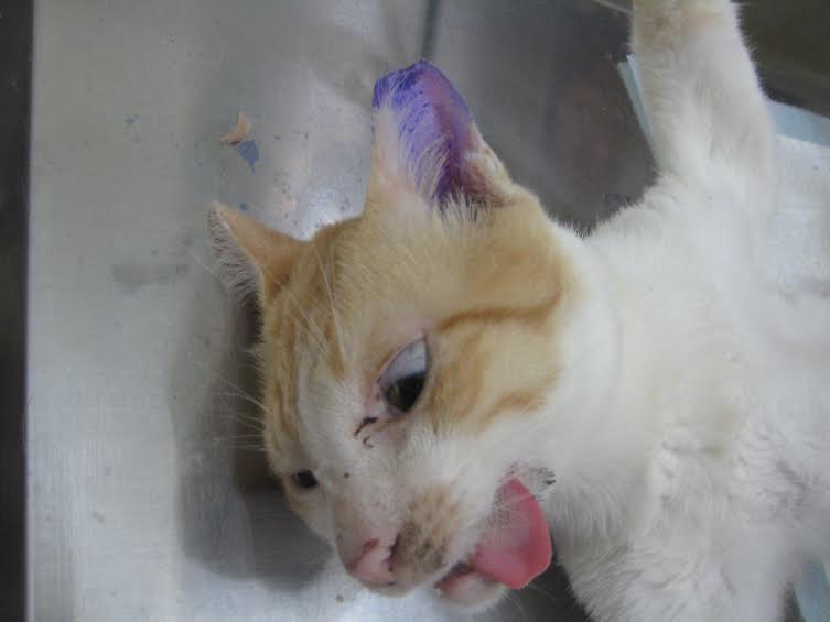 有一隻眼睛受傷要協助捕抓