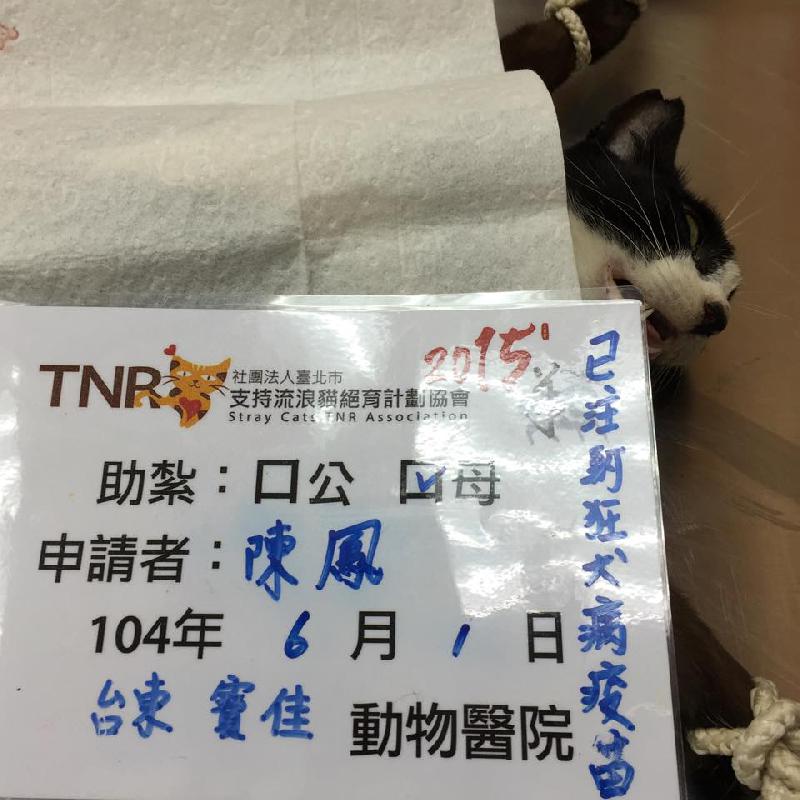 花色: 黑白 誘捕地點: 台東市鐵花村
