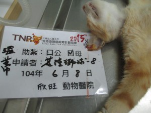 結紮醫院: 欣旺動物醫院 結紮費用: 1500